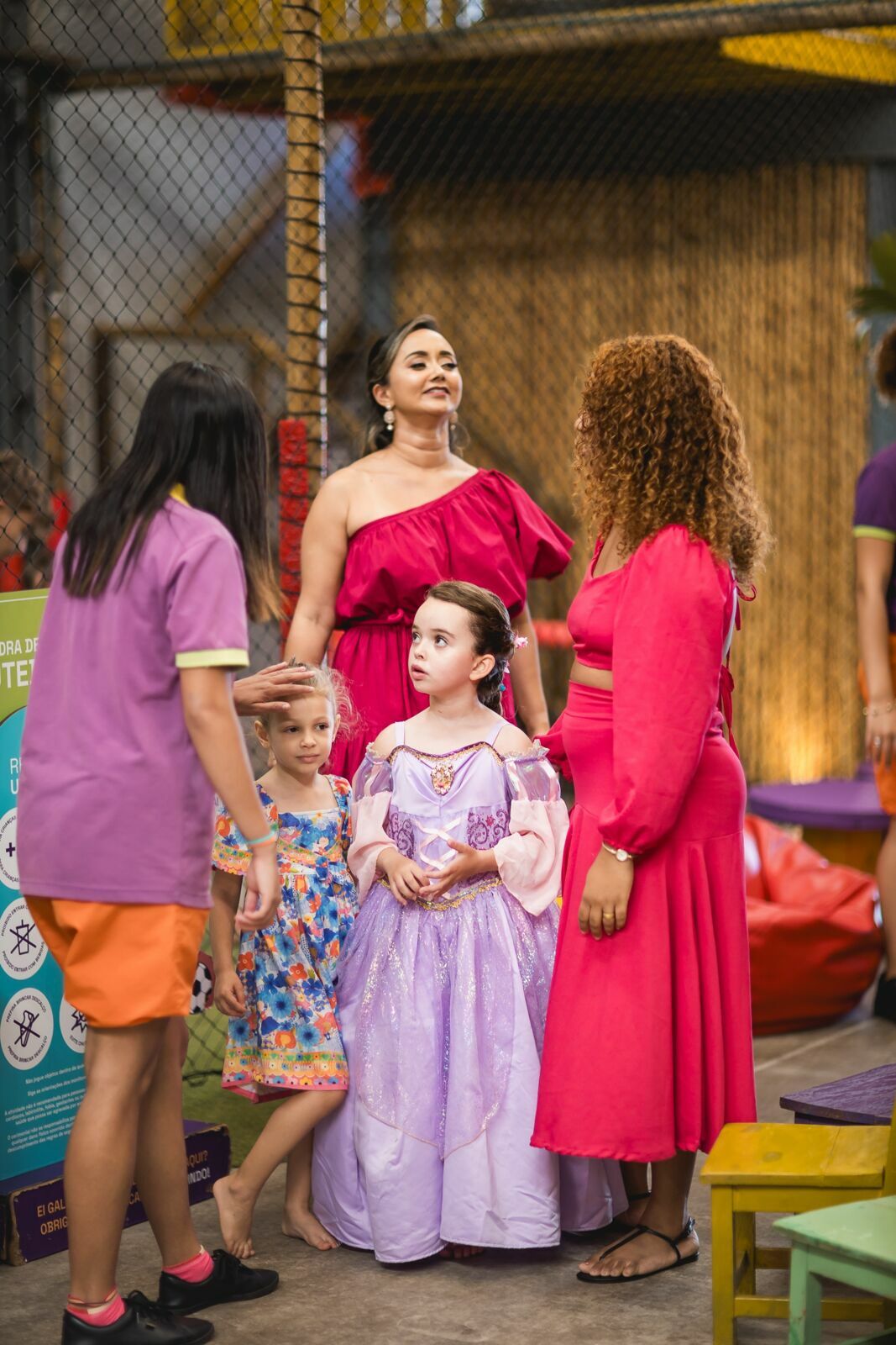 Mas o mais mágico mesmo foi ver o quanto ela curtiu cada segundinho da sua festa. Foi na Vila Pindô que esse conto de fadas ganhou vida: amigos correndo de um lado pro outro, família juntinha, um monte de risadas e até uma chuva de bolhas de sabão que parecia ter vindo direto de um sonho!