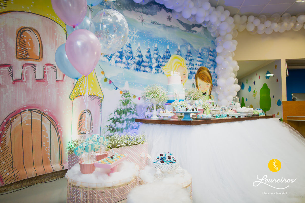 Em festa de Frozen não podem faltar princesas… e lá estavam elas, as duas princesas em seus vestidos de princesas com detalhes de princesas… Lindas demais, esbanjando charme!! E se uma já era uma boneca, linda e fofa, duas então arrancam mais suspiros ainda!! Essas duas irmãzinhas comemoraram seus primeiro e 4 aninhos rodeadas de muito amor e carinho e com uma festa pra lá de linda, cheia de diversão, sorrisos e muitos amiguinhos e titios para cantarem um parabéns bem animado!! Amamos ter feito parte de mais um momento especial na vida dessa família que amamos ter conhecido… Vocês são muito queridos!